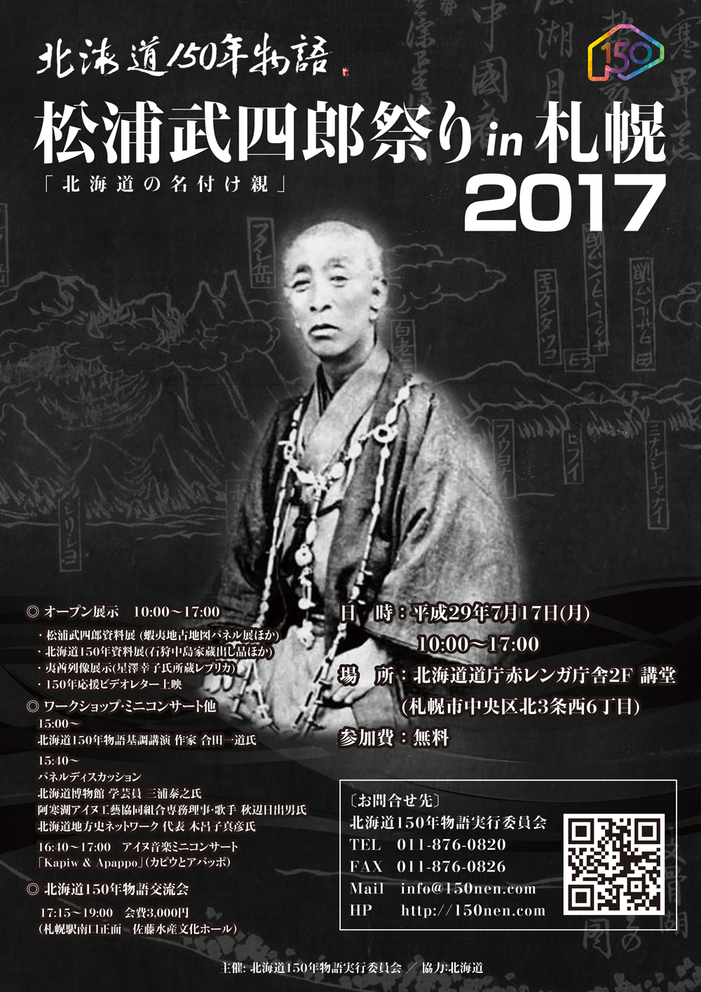 このたび、北海道150年を記念して賑わい豊かな北海道を創っていこうという有志の 集まりである「北海道150年物語実行委員会」が来年本番に向けたリハーサルとして「松浦武四郎祭りin札幌2017」を開催し盛況のうちに終了しました。