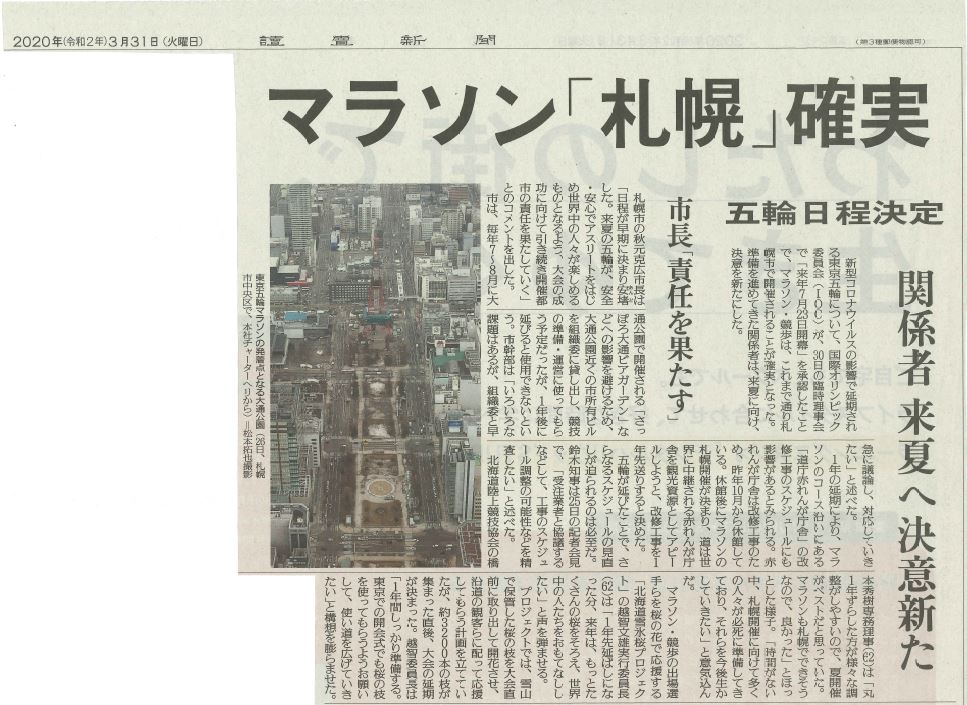 2020東京オリンピックのマラソン、競歩の札幌開催が決まりました。