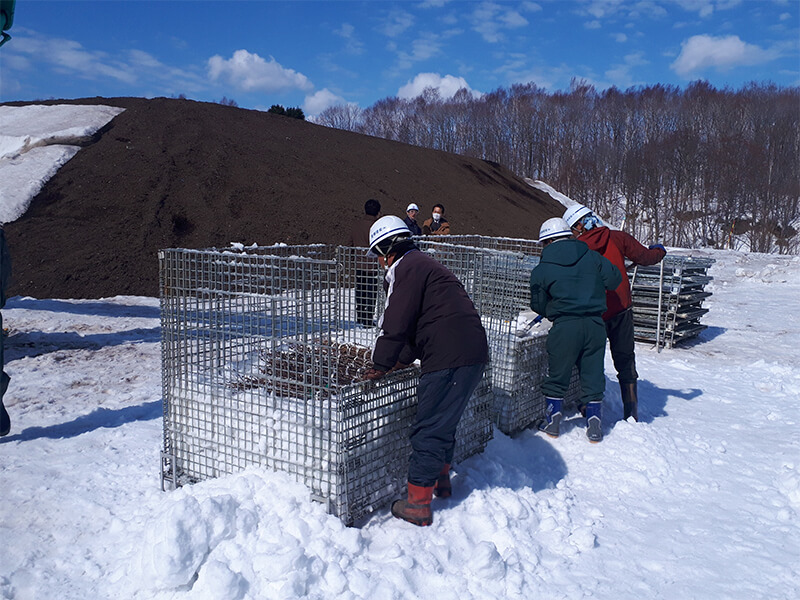 7.雪山にさらにバーク材※をかぶせてできあがり。高さは5m、地下も2m深さがあります。