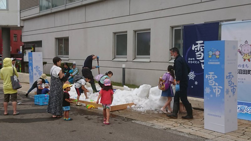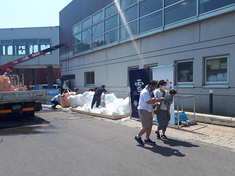 また場外では雪の展示も同時に開催。7/24(土)は沼田町も30℃を記録したようですが、季節外れの真っ白な雪に涼と癒しを感じました。