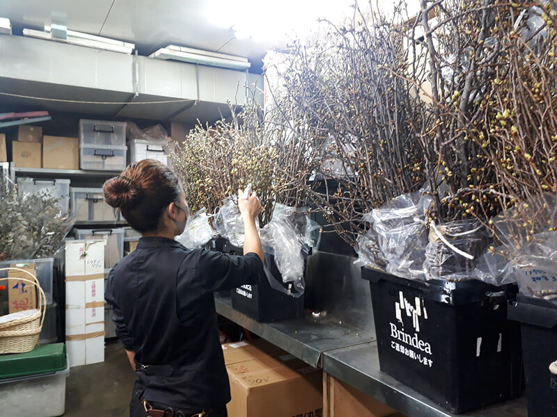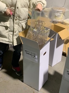 雪蔵で開花遅らせ会場へ