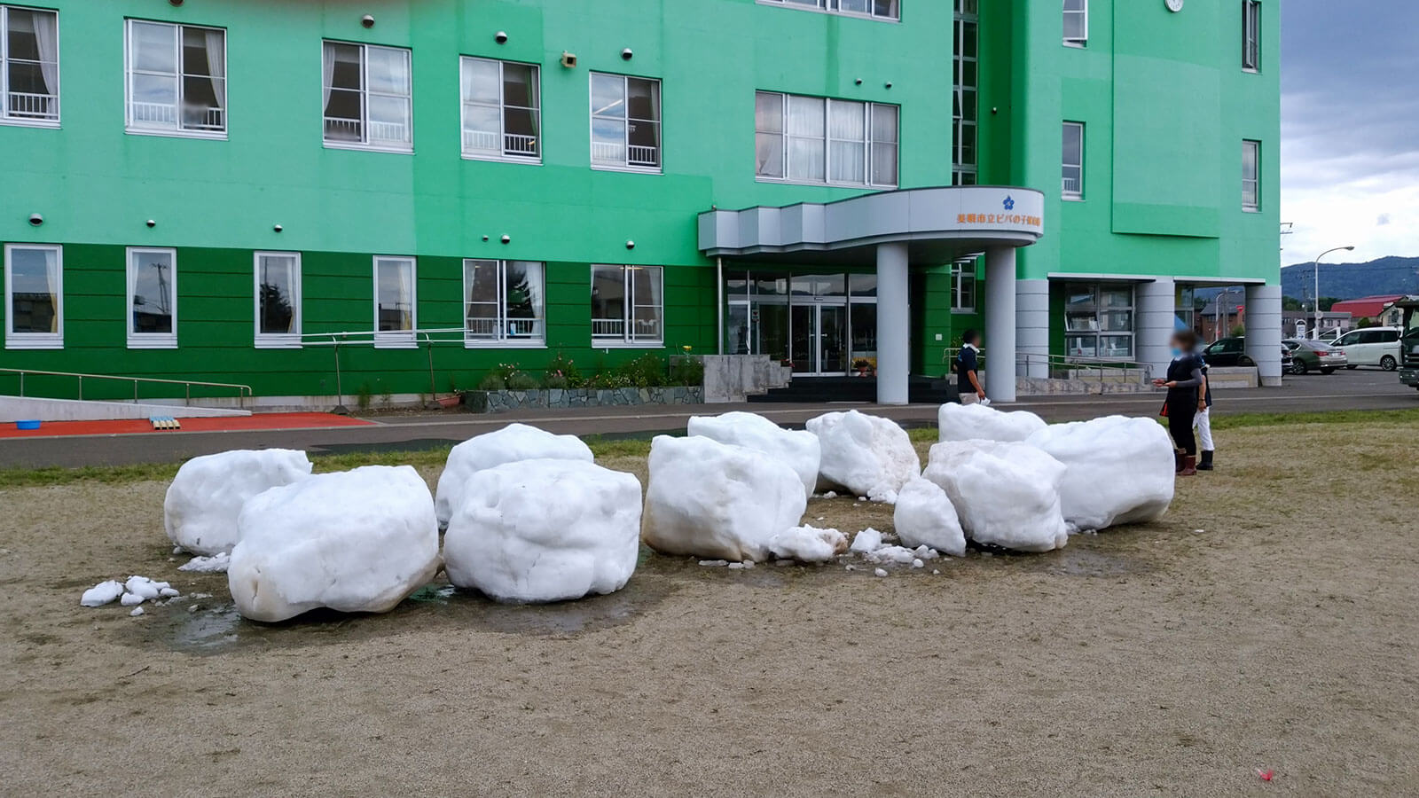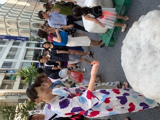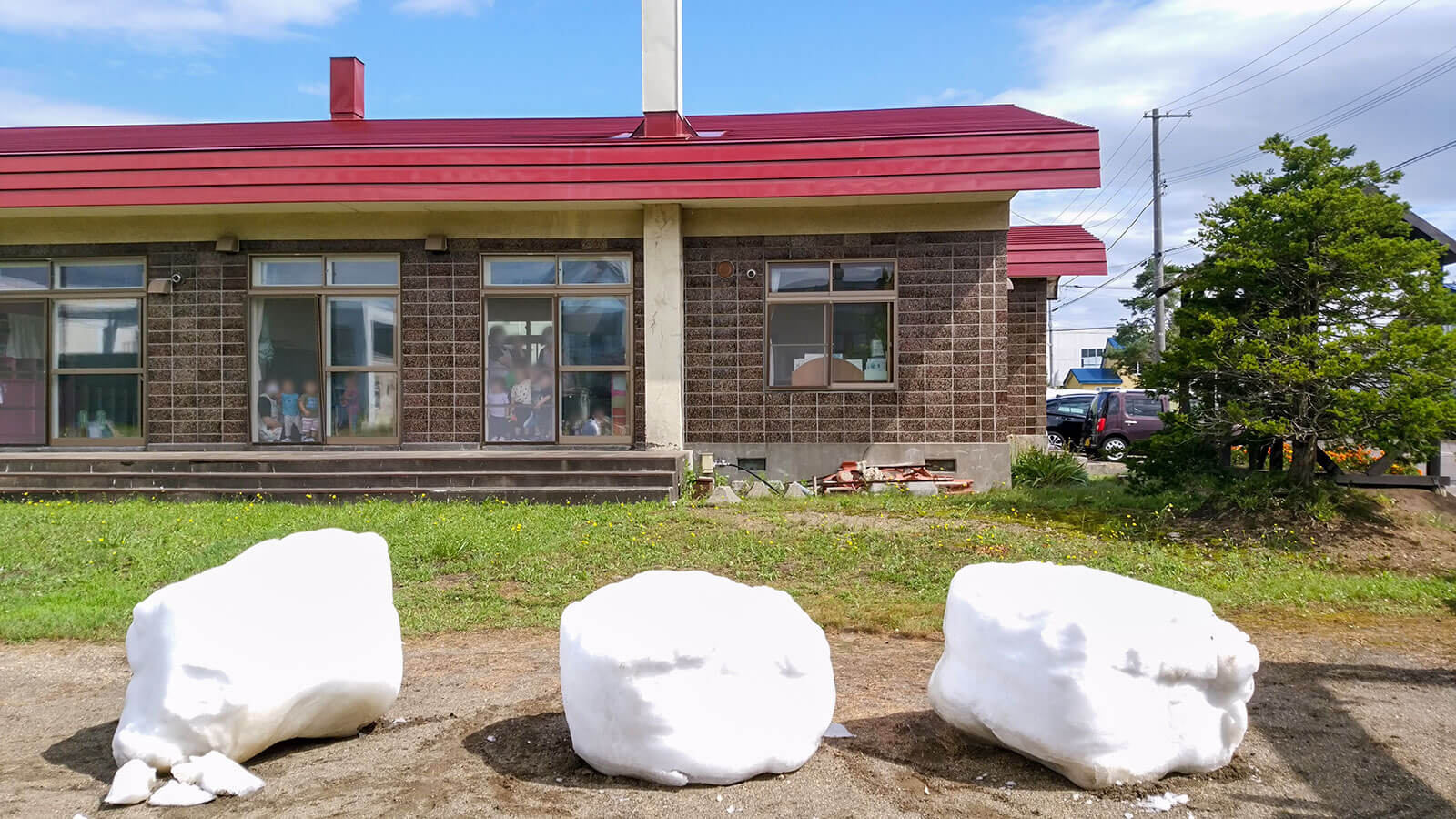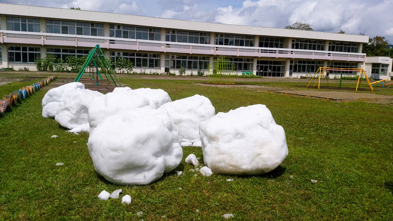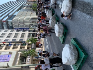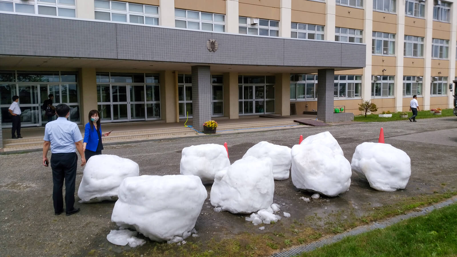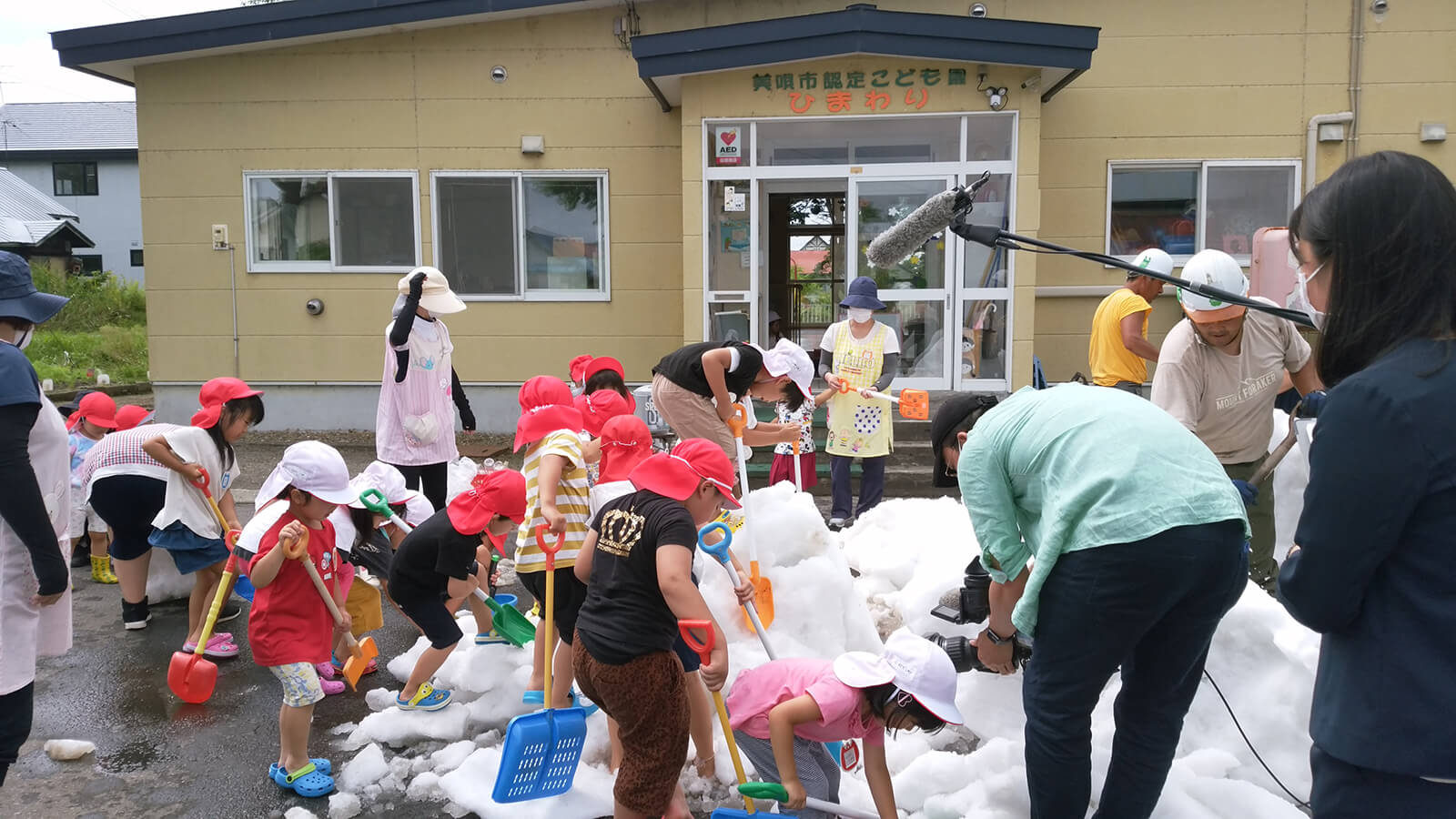 当日は北海道から繰り出したボランティアと東京の応援ボランティア総勢30人が人力で12柱を配置。炎天下の路上が打ち水効果でひんやりとした空間となり、外国人や子供たちが真夏の雪に触れて終日賑わいました。