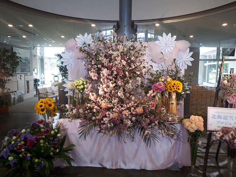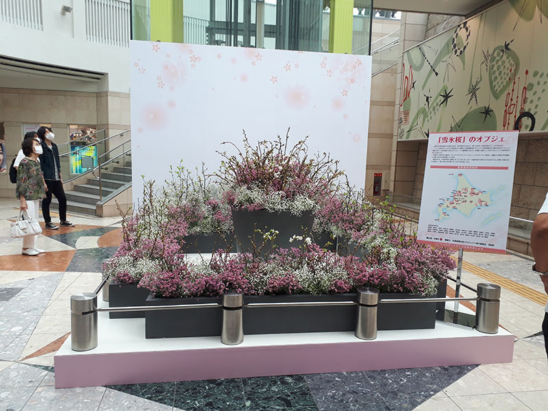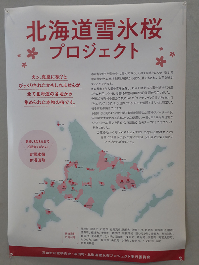 ご提供いただいた32市町村の名前がパネルで紹介される他、桜と同じように雪で開花調整している「雪中スノーボール」という花や、沼田町で生産されている花も併せて飾られます。