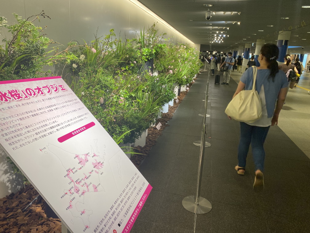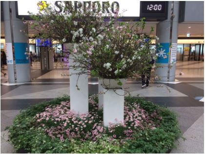 東京2020オリンピック競技大会のマラソン・競歩競技の実施に向けて、全道32市町村と北海道神宮からご提供いただいた桜の枝が、いよいよ開花してオブジェとなり、札幌駅前地下歩行空間(チ・カ・ホ)に展示されます。