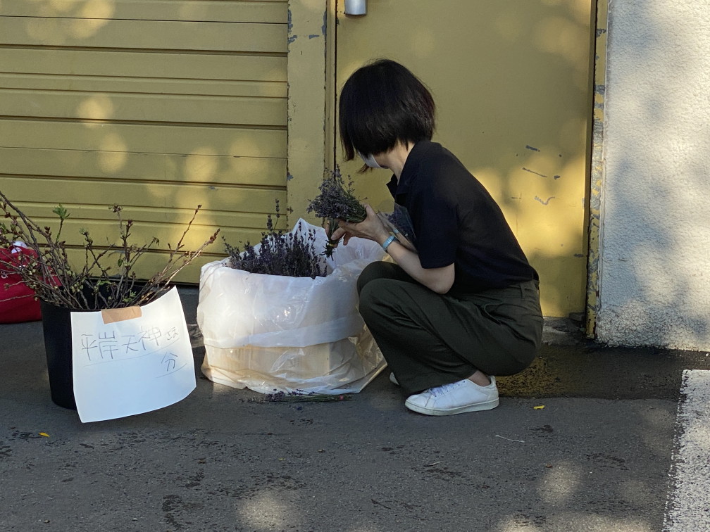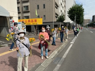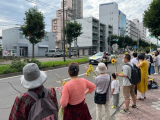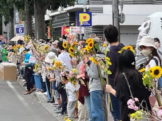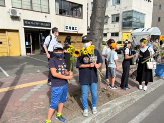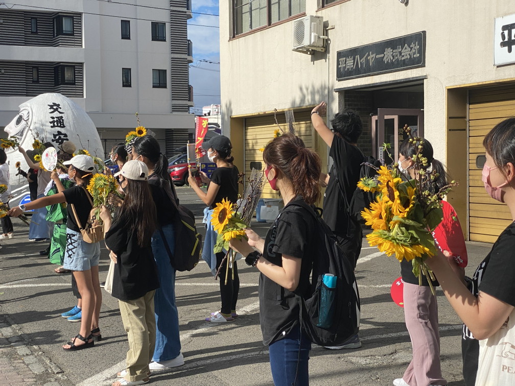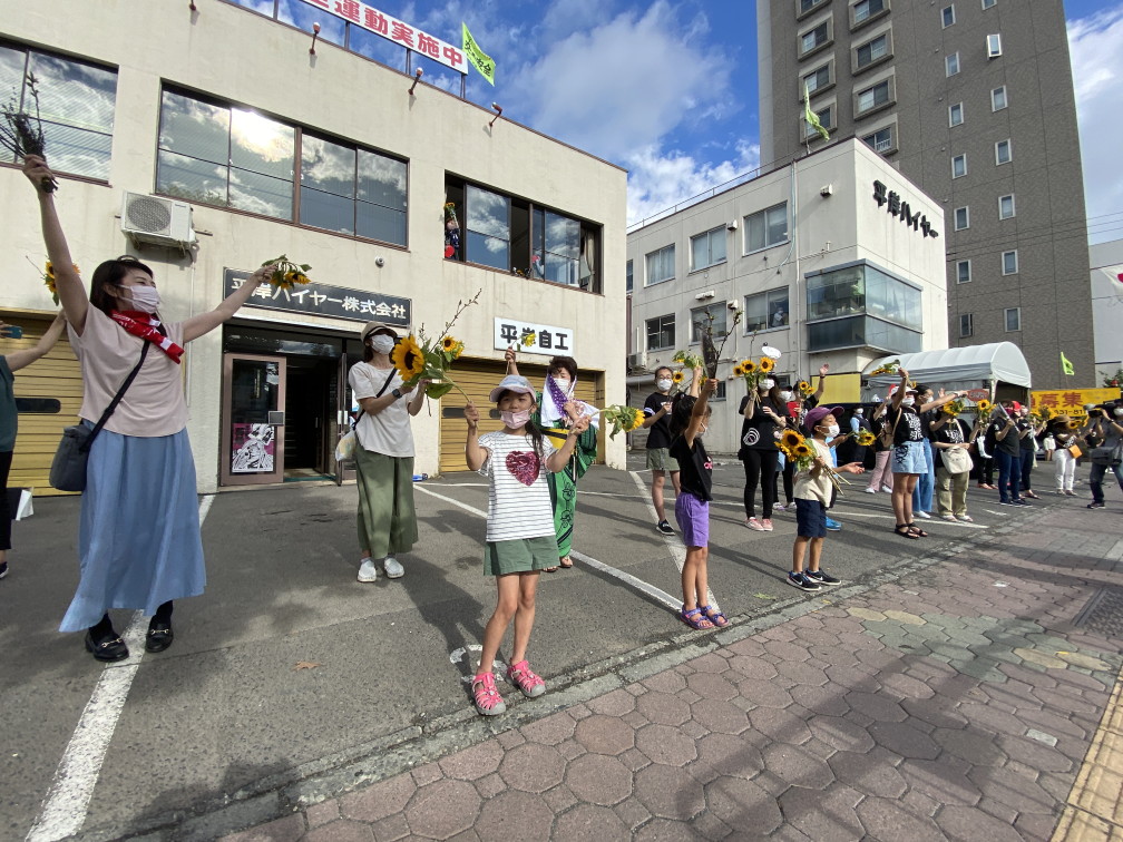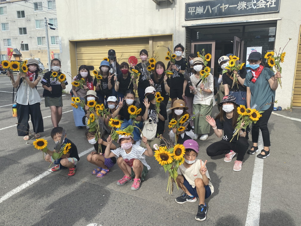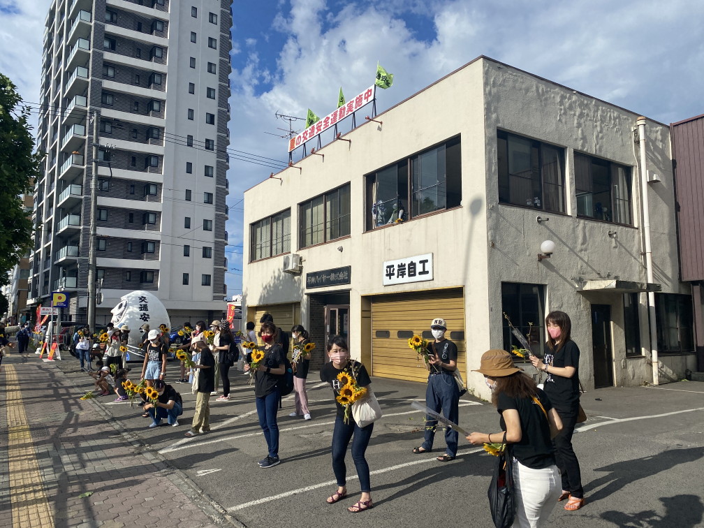 8月6日(金)に平岸天神有志など実行委員会ボランティアにより各戸に家族数分の桜の枝またはひまわり、ラベンダーを届けてもらいますので、窓やベランダからの応援に使って下さい。2日間開花をもたせるために受け取り後は水に浸けて冷暗所で保管してください。