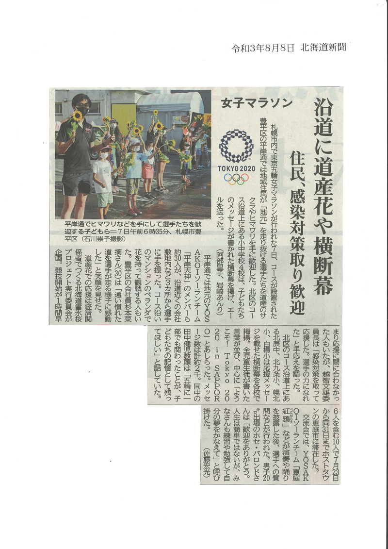 実行委員会では、8月25日(日)の北海道マラソンでの応援で年内の活動をいったん終了し、来年6月の18市町聖火リレー応援も企画スタートさせました。