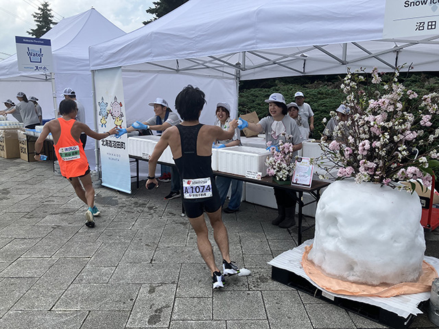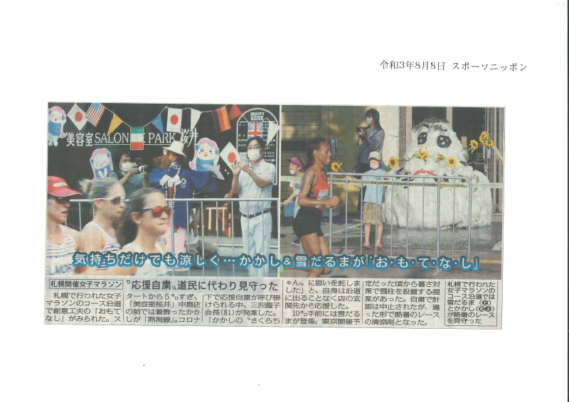 会場にはオリンピック組織委員会と日本陸連からも雪と桜の状態を視察に来ていただき、北海道の雪氷冷熱の猛暑対策の有効性とおもてなしのエネルギーを体感してもらいました。