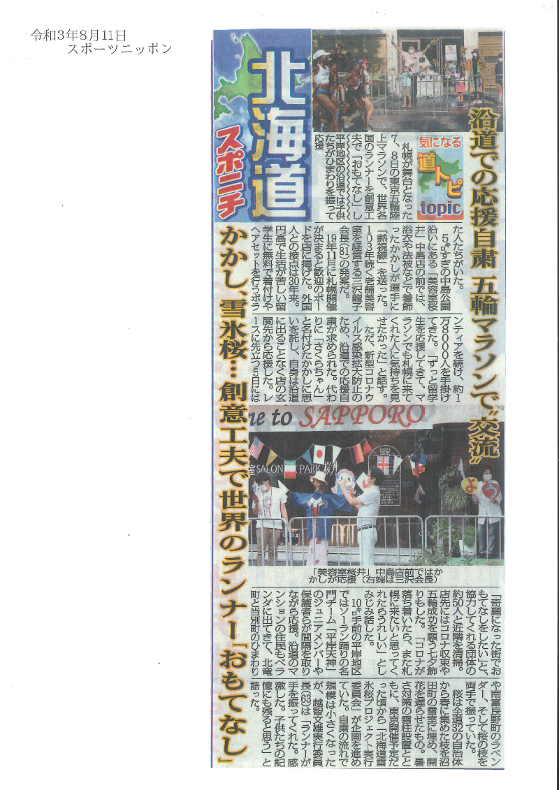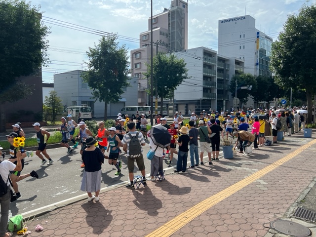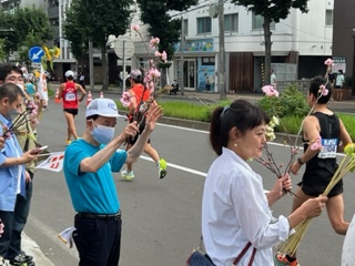 【北海道雪氷桜】で、平岸地区のマラソンコース沿道町内会や商店街の皆さんが応援します。