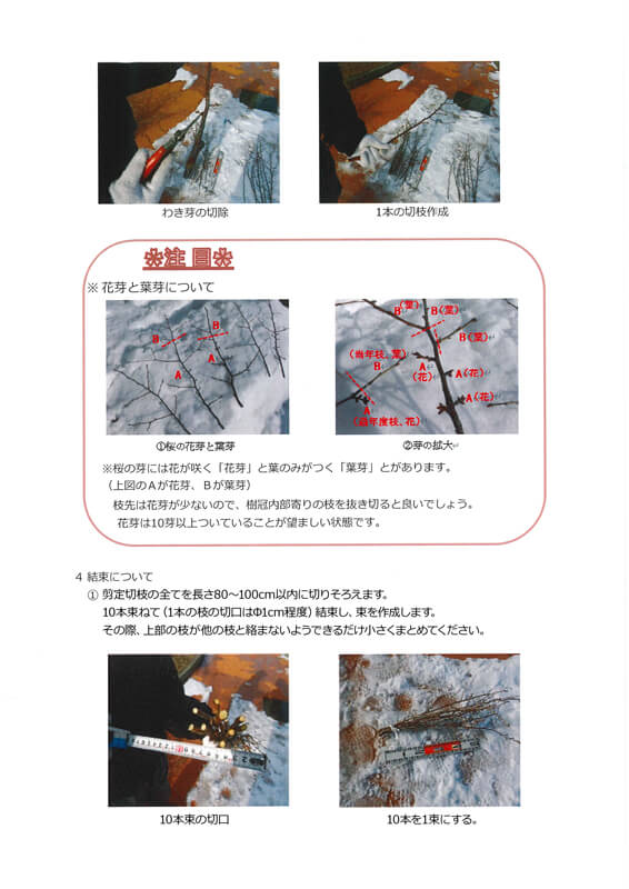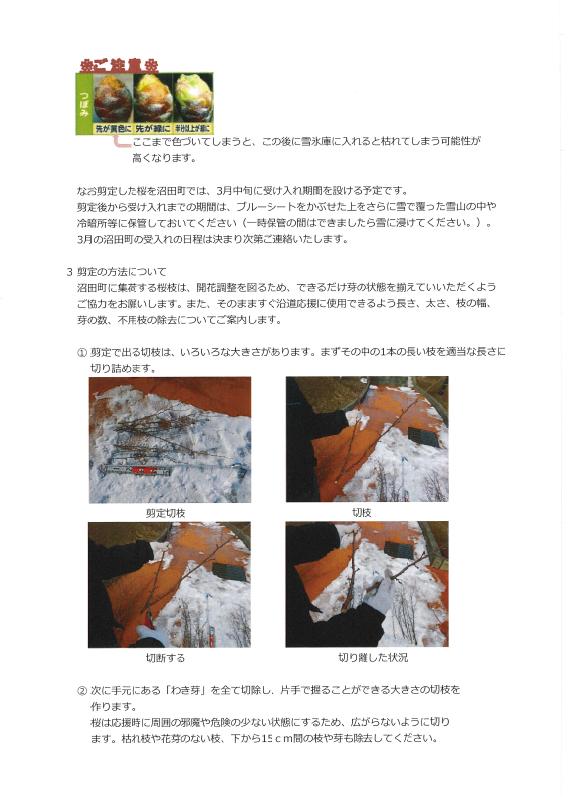 3月~7月 桜枝せん定・沼田町にて保管・開花実験