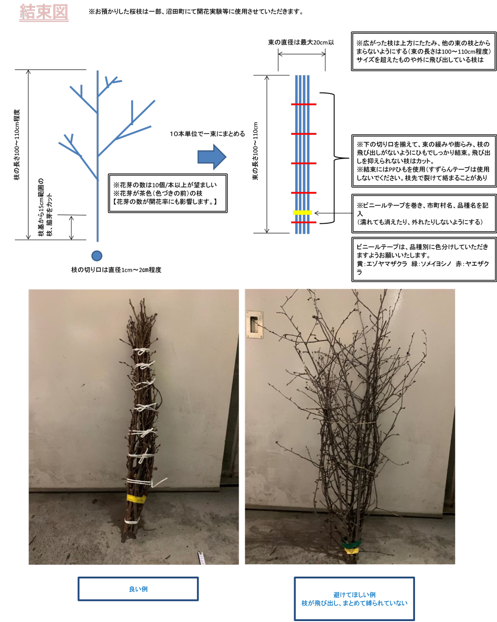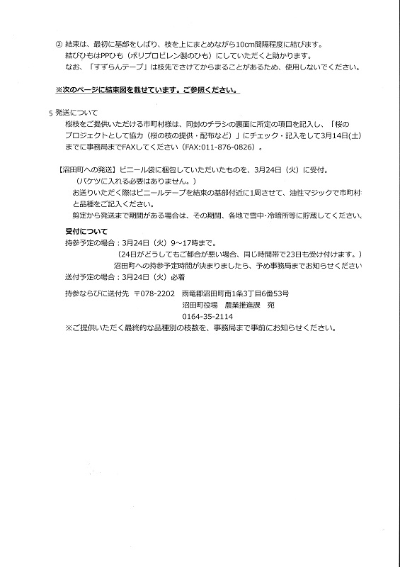 ※ご提出いただく桜の枝の種類別実本数を事務局までお知らせください。