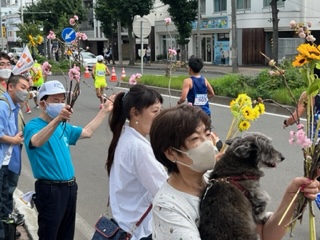 花の枝調達の事情により高層階やエリアにより配布ができない地域も予想されますが、心をこめて手を振って鈴なりの応援をお願いします。